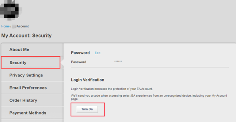 1. Log in to your EA account on ea.com