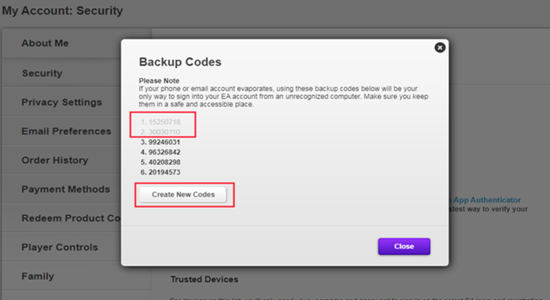 Notice: If the backup codes are gray, it means they have already been used and expired because each code can only be used once. Click the button to get valid codes.