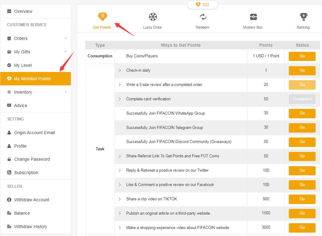 After payment, you have 2 trade ways to get coins from your FIFACOIN.com member account: