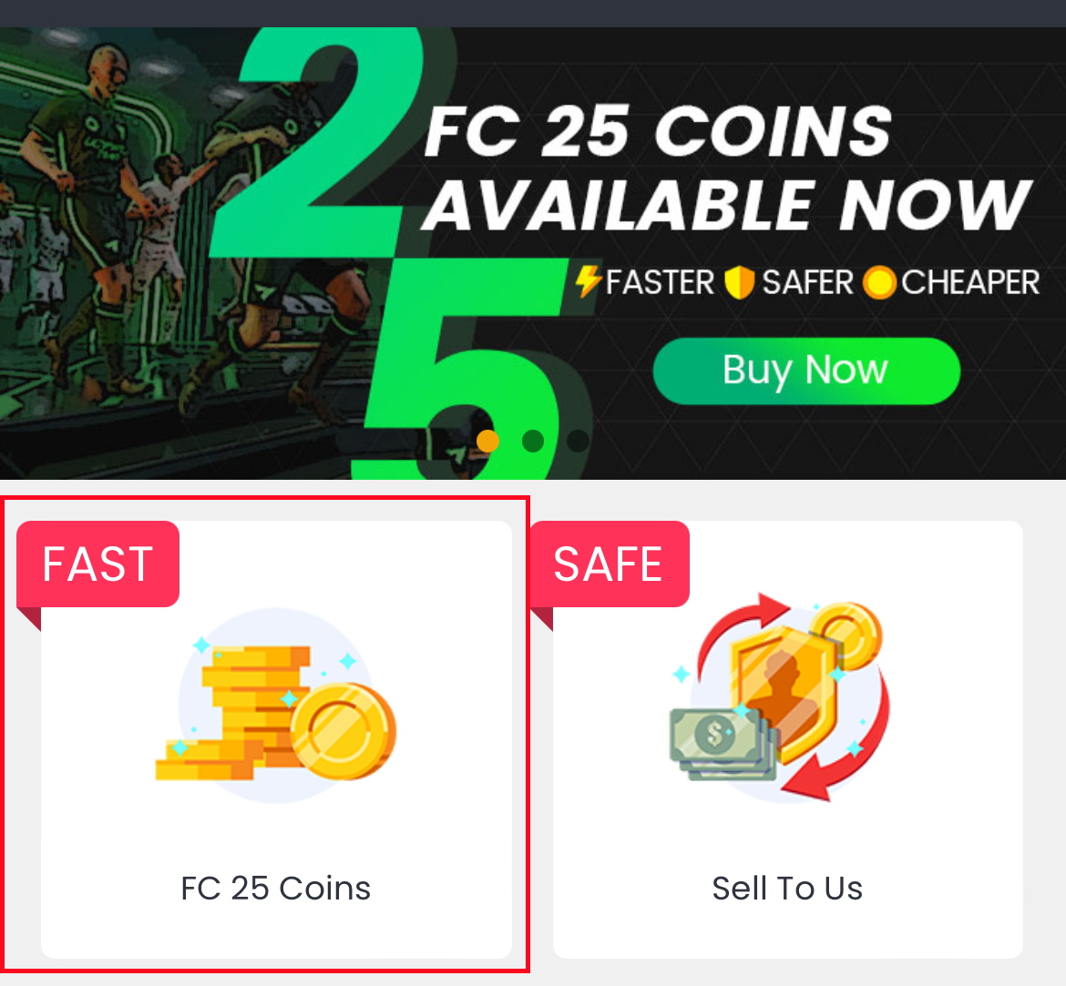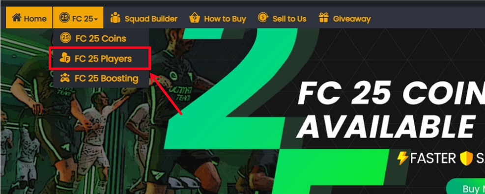 1. Bitte loggen Sie sich vor der Bestellung in Ihr Mitgliedskonto ein und klicken Sie auf "FC 26 Münzen".