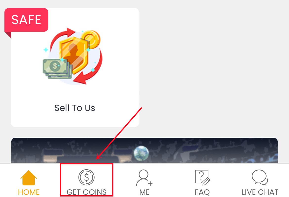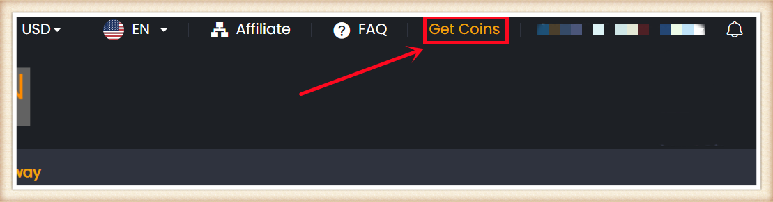 1. Click "Get Coins" at the top right of the page.