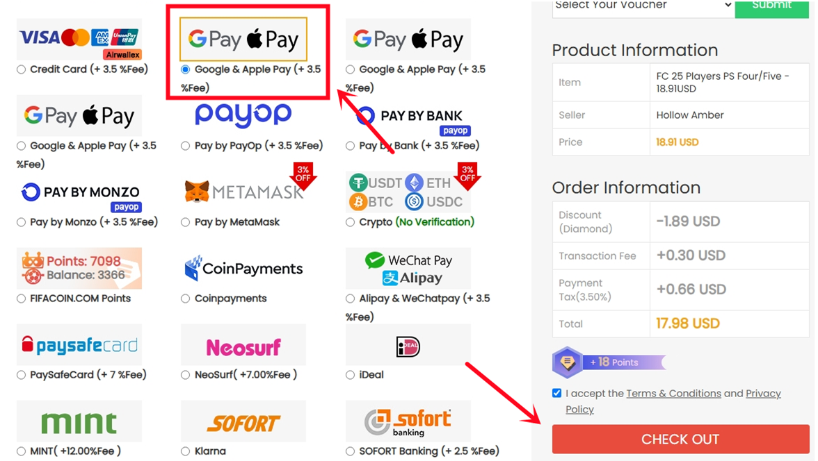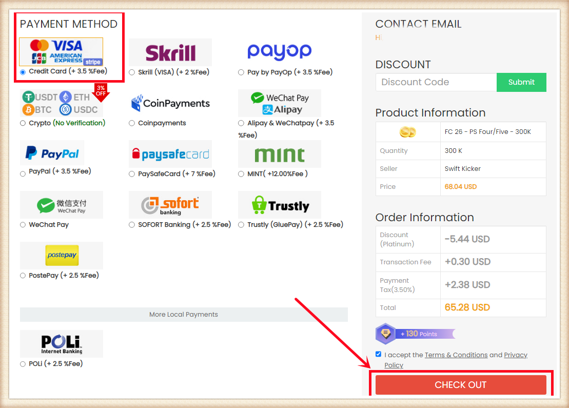 3. Elija el método de pago y proceda al CHECK OUT.