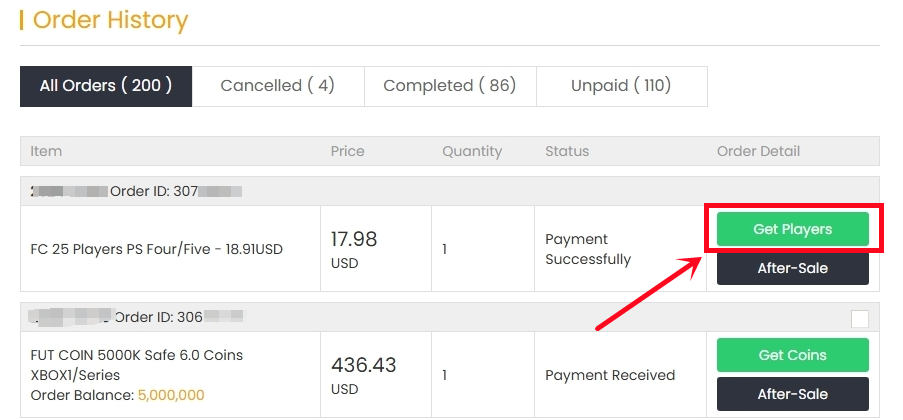 8. Please wait for a while till we buy your player card, then log in to collect your coins.