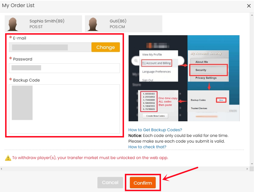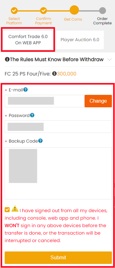 2. When it's unlocked, get coins again to submit your correct EA account details. The order will be kept on our site, with no expiration before the next version of FC release.