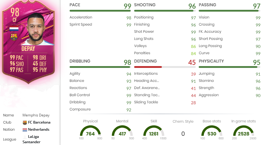 84 in Penalties. In any case, it's all 90s for Depay, remembering an ideal 99