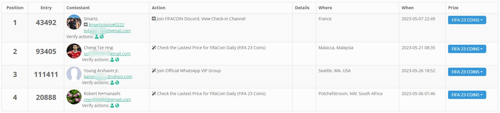 Thanks for everyone spending the time to join every event at FIFACOIN! Let's see the list of WINNERS together.