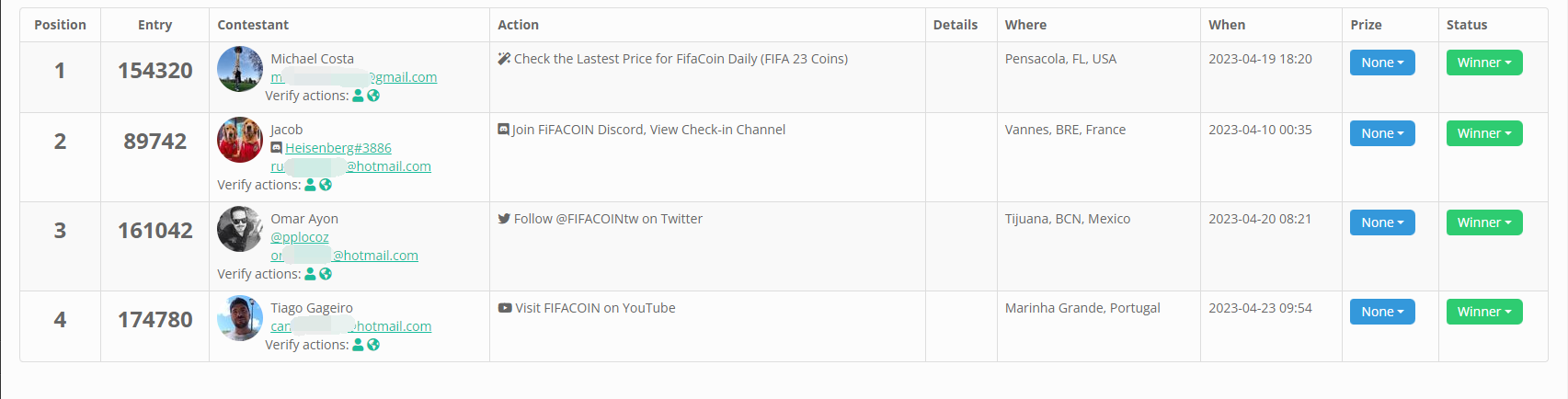 The 4 winners have been randomly chosen by the third party Gleam. The higher the participation, the greater the chance of being selected! Check the prizes as follow now,