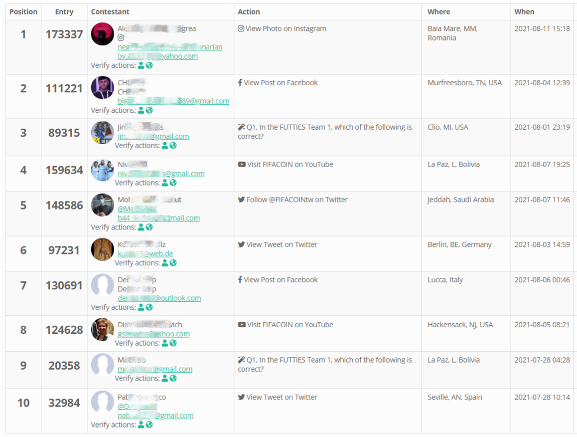 The last Giveaway of FUT 21 has come to an end. Thanks for everyone to spend the time to join every event! Let's see how it turns out: